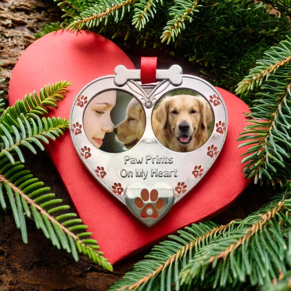 Double Picture Pet Ornament - Paw Prints on My Heart - 2 Pack