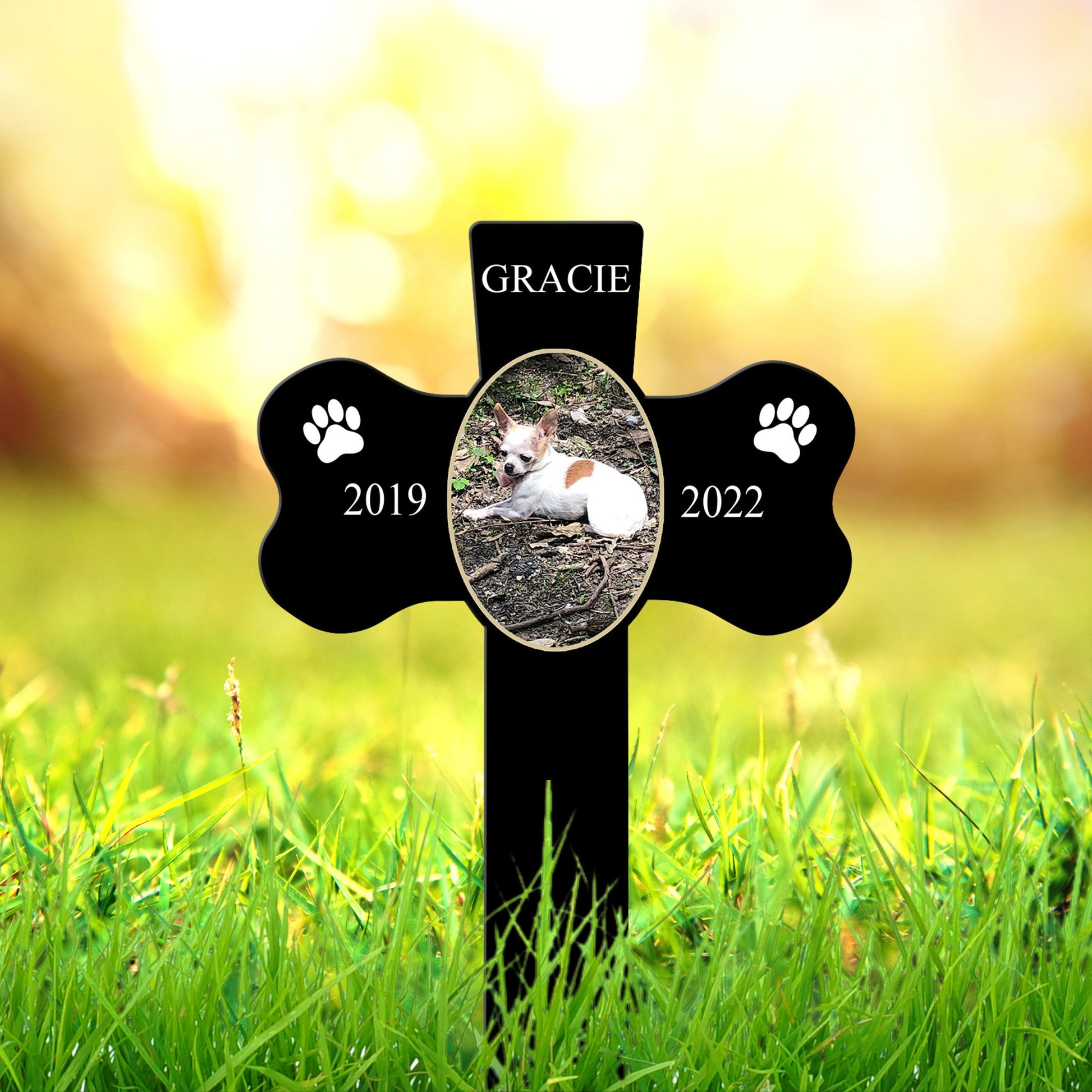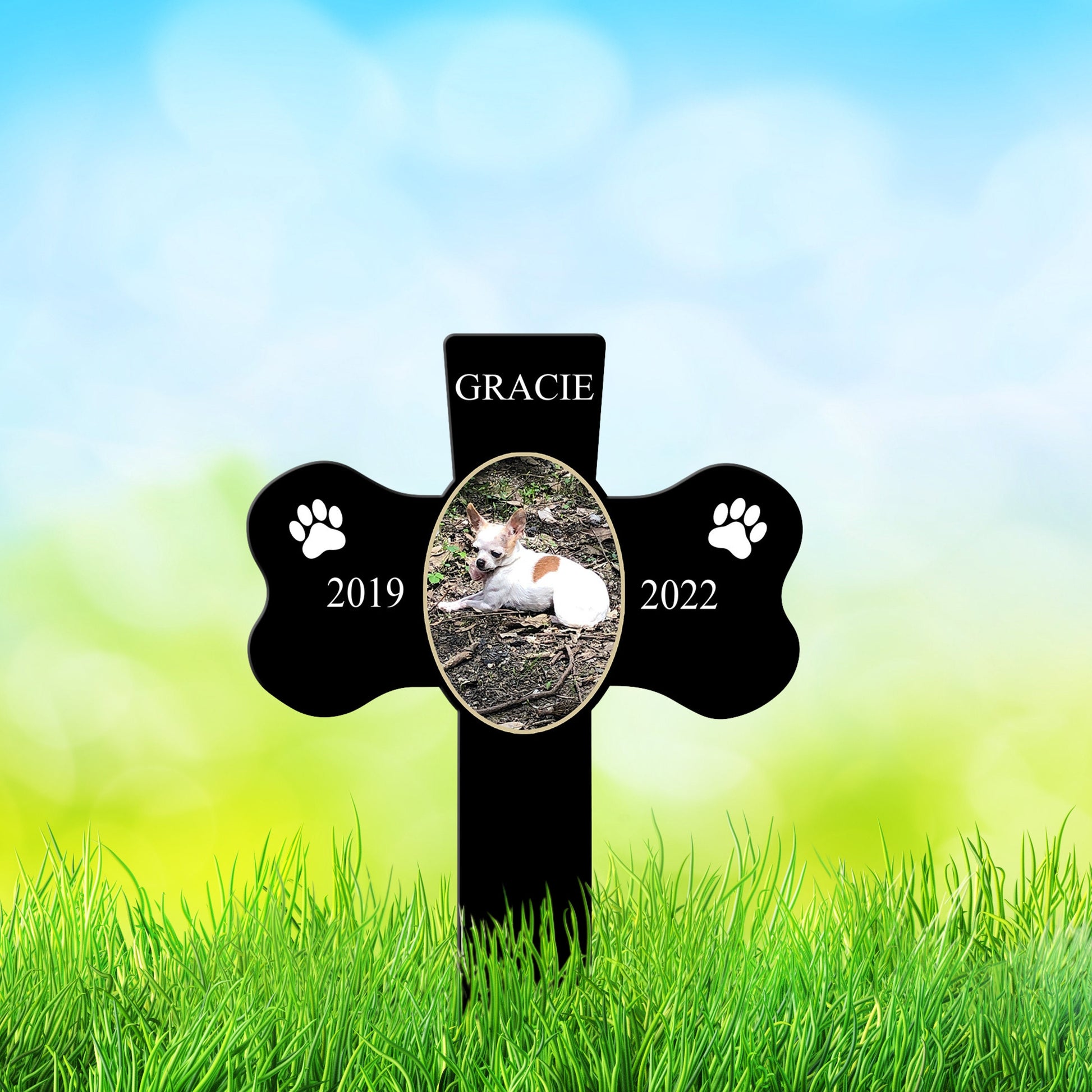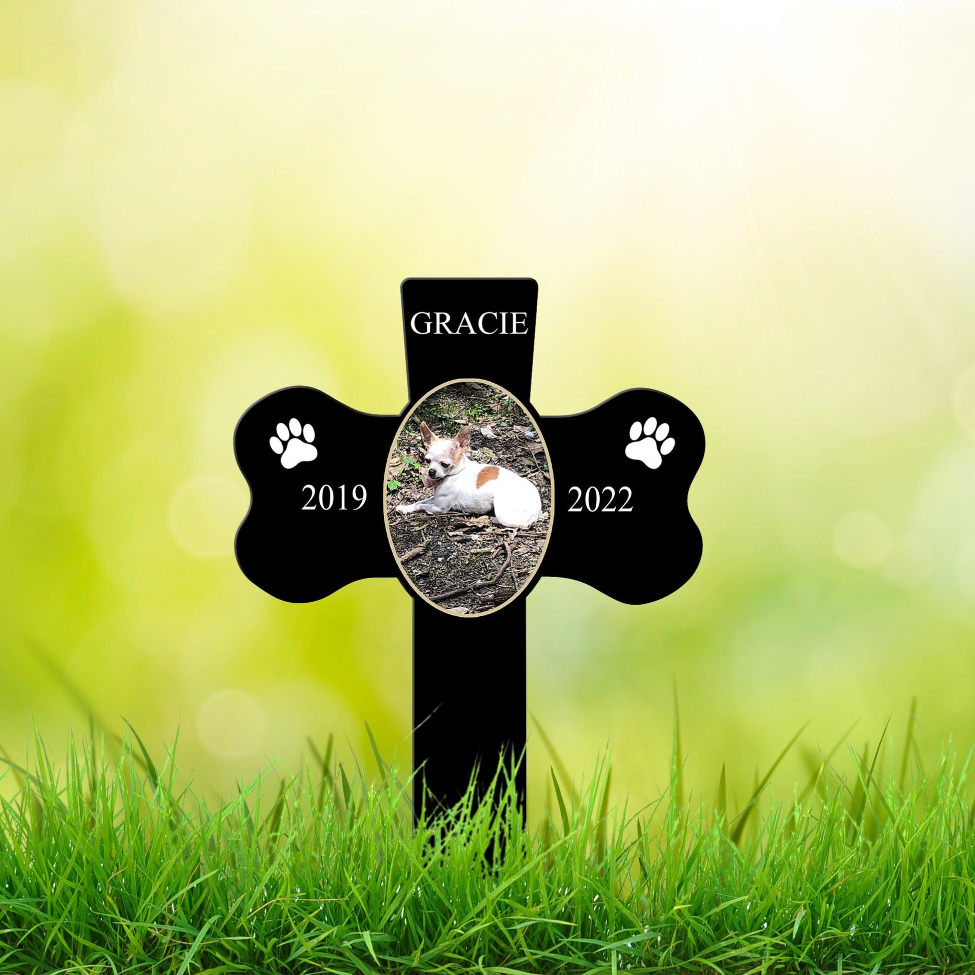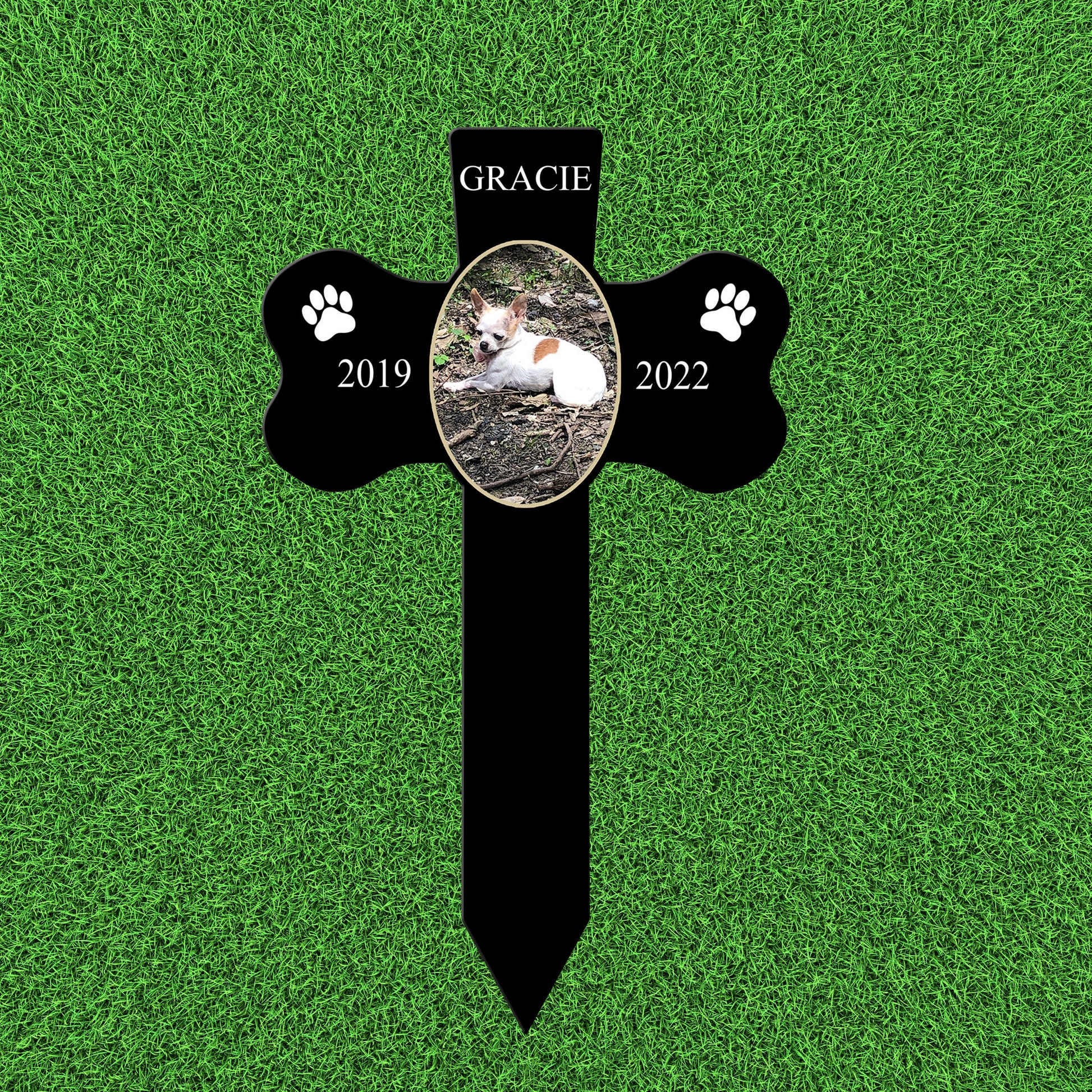 - Customizable, simply input the name and dates and upload an image to customize your pet memorial stake
