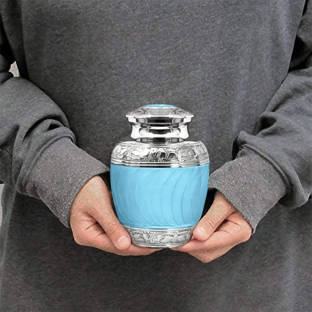 Hugs and Kisses Brass Cremation Urn (Blue or Pink)