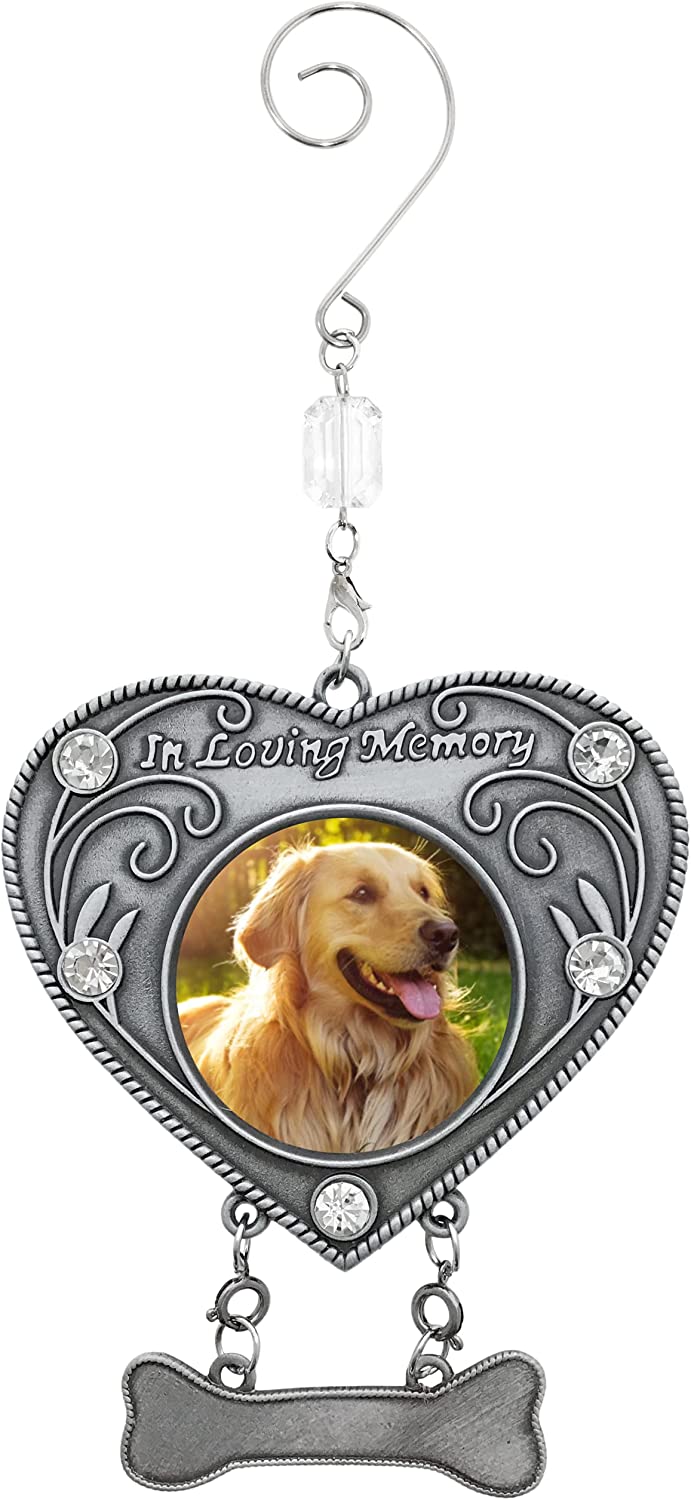 Dog Memorial Photo Ornament | "In Loving Memory" Heart Shaped Picture Christmas Ornament