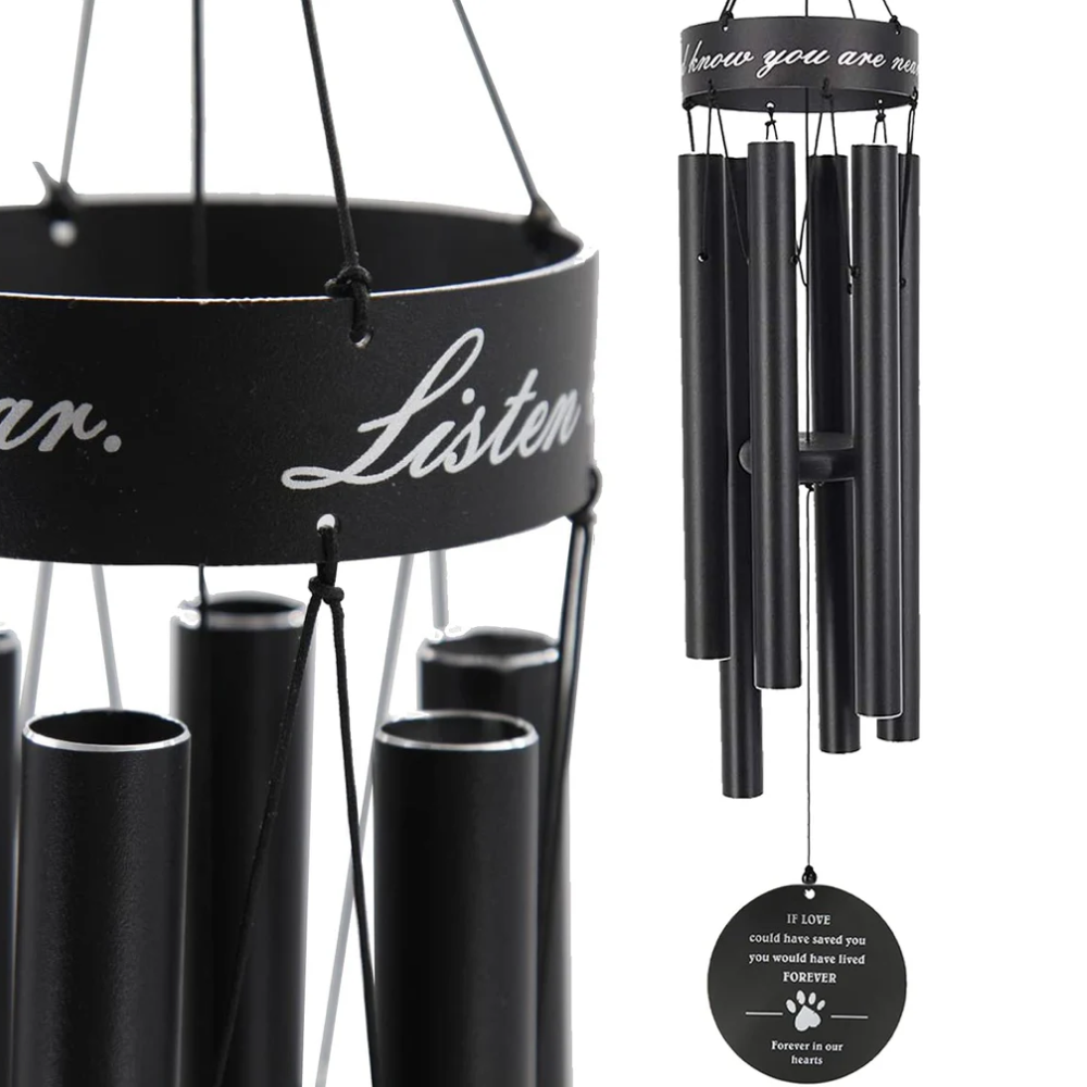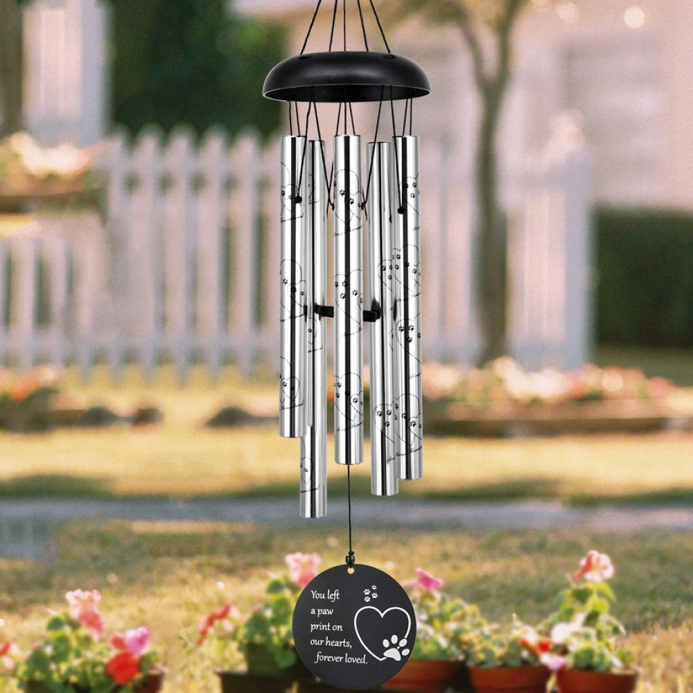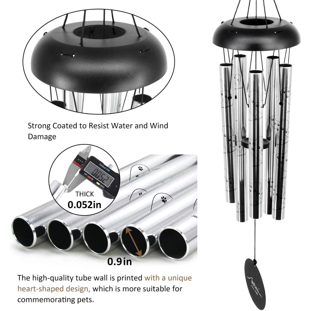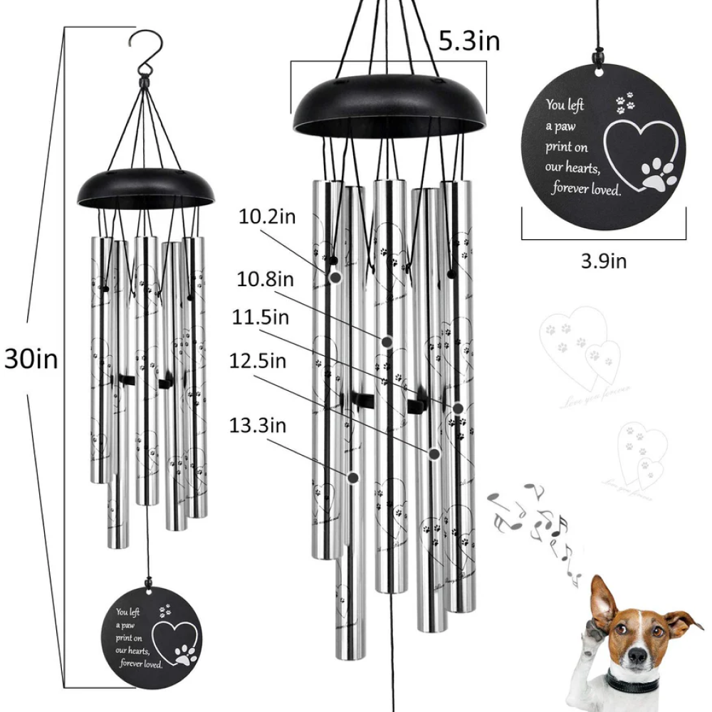 Experience the soothing sounds of our meticulously crafted metal wind chimes, designed to honor the memory of your beloved pet. Each tube of these 30-inch chimes is expertly tuned for superior musical quality, creating a symphony of memories with every breeze.