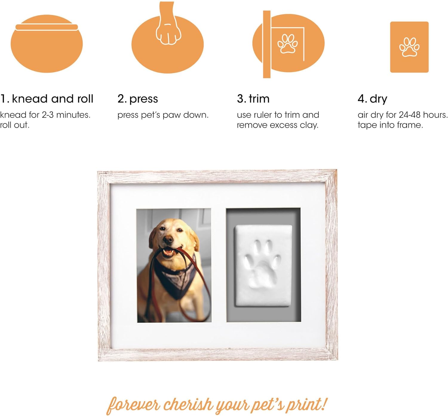 Pet Pawprints Wall Picture Frame and Clay Impression Kit, Distressed White