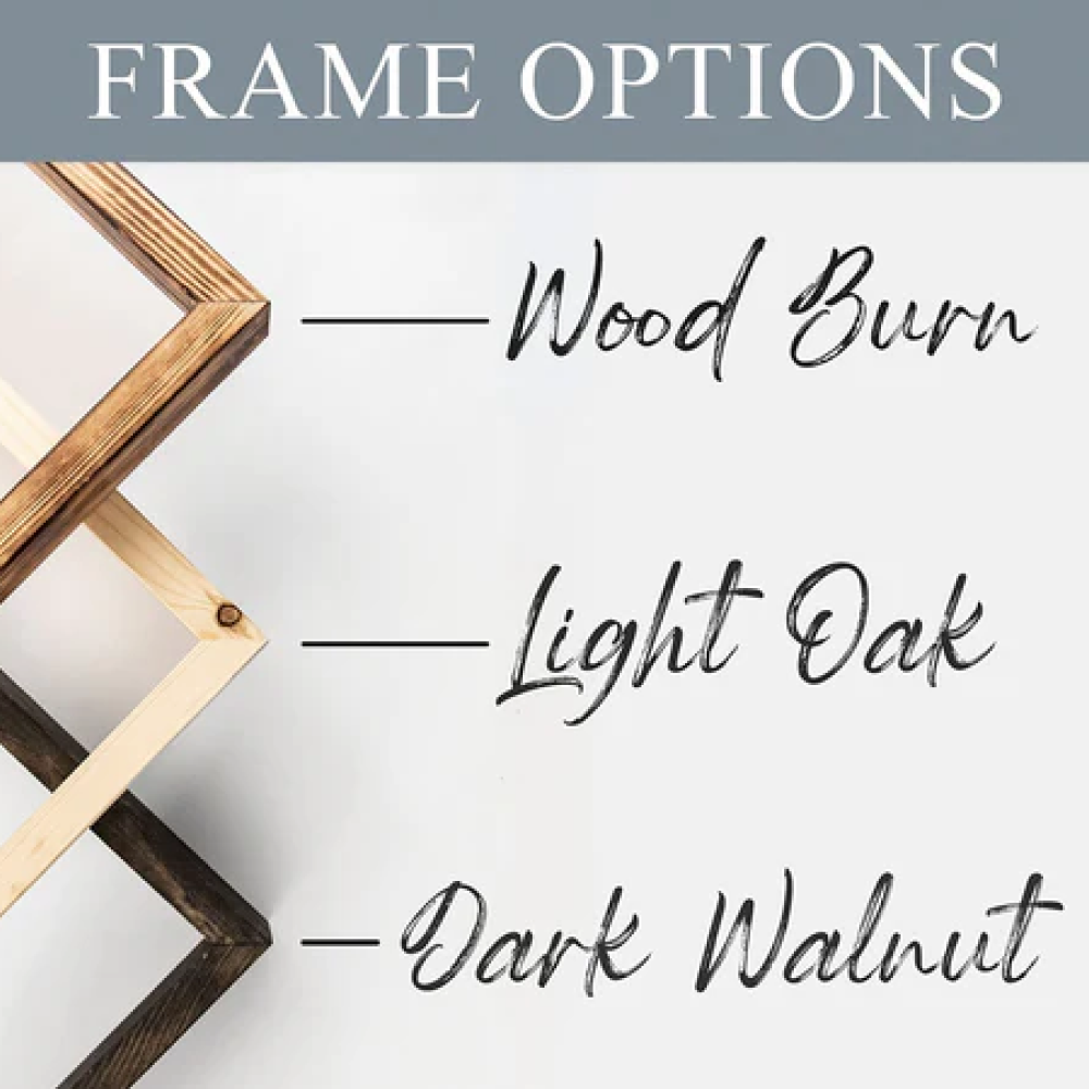 - Select Frame Color: Customize the look of your framed wood panels by choosing from available frame colors including "light," "wood burn," or "dark."